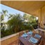 Dining area by the barbeque and patio with kitchen and bar area both offer shaded zones in which to unwind, nicely protected from the heat of the sun. A large wooden dining table and a breakfast bar as well as a barbecue area offer another choice when it comes to mealtimes. There’s also an outdoor shower to save you the trip inside, meaning you can enjoy the great weather for longer! To the west of the house is a huge patio with sofas and armchairs and an array of plants that overlooks the garden, perfect for an afternoon break.