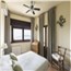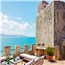 A separate staircase leads to the ancient watchtower, which houses a charming double bedroom with a fireplace, a dressing area, and a bathroom with a shower. The tower also offers access to a small terrace with sweeping sea views.